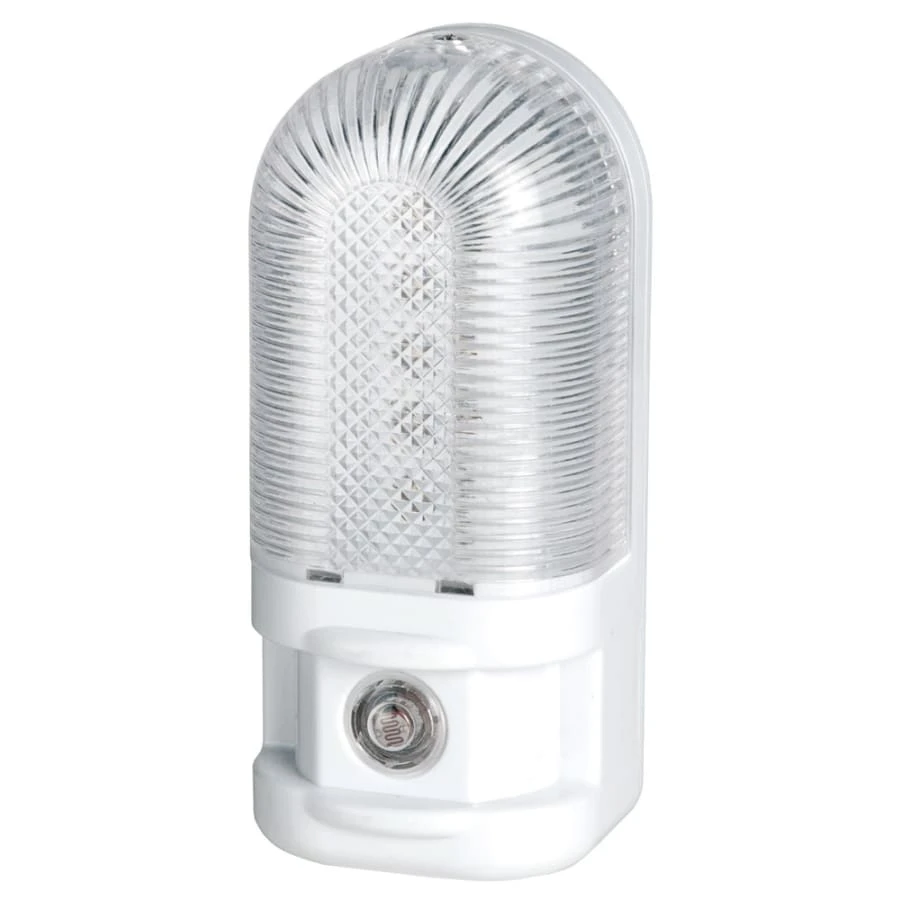 Energieffektiv och energisnål, långvarig LED (ej utbytbar). Färgen på lysdioden är varmvit. Den kompakta nattlampan märks inte. Med skymningsbrytare = lyser i skymningen och släcks i gryningen.