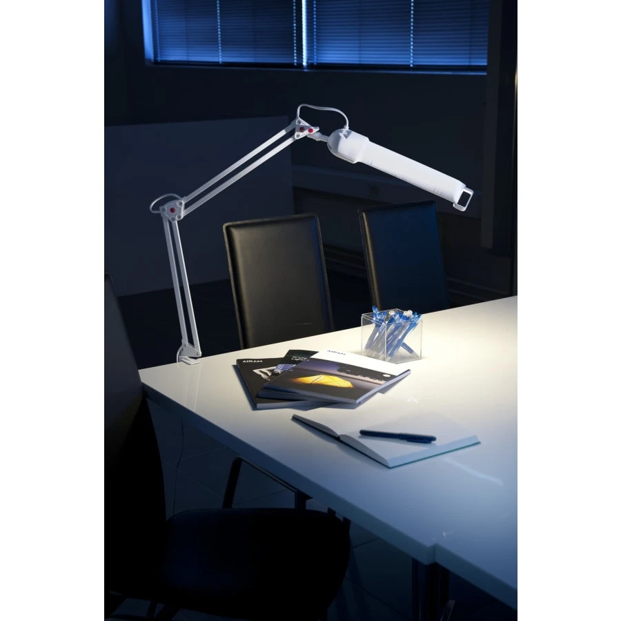 A classic, articulated desk lamp for the office, home office or even as a working light for a schoolchild. Ergonomic design, the lamp body is movable and the lighting angle and position can be adjusted easily. Securely attached to the edge of the table top with a screwable table bracket.