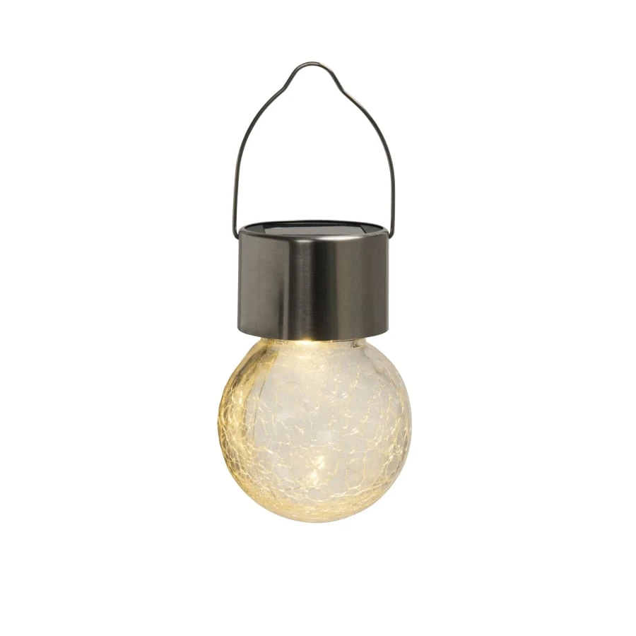 En vacker liten solglaslykta, som är speciellt imponerande i en grupp av flera lyktor. Led 1 st varmvit, ej utbytbar. Medföljer utbytbart och uppladdningsbart batteri Ni-Mh 2/3 AA 100 mAh 1,2V. Material metall och glas. Lykta Ø 6cm.