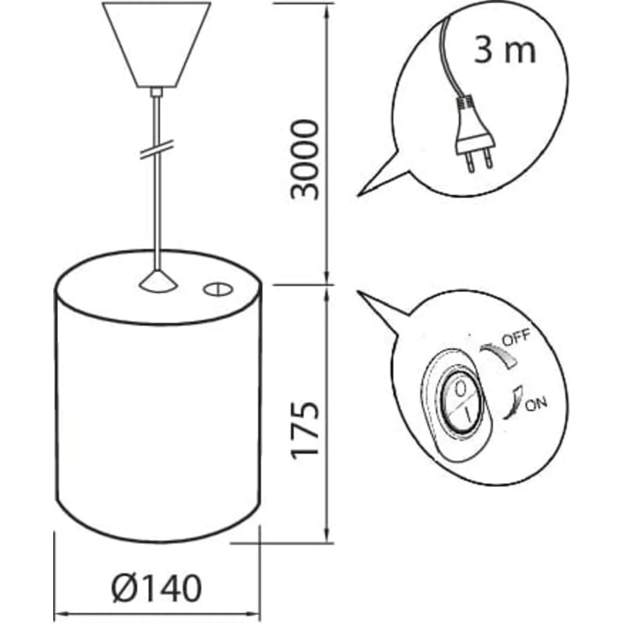- Ripustusjohdon pituus 3m