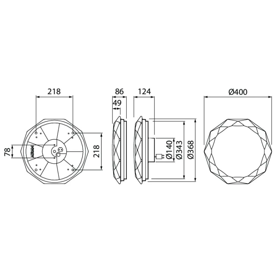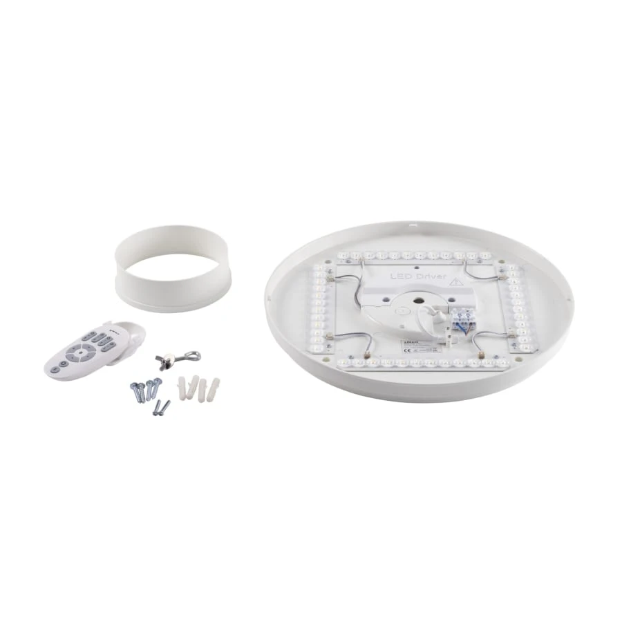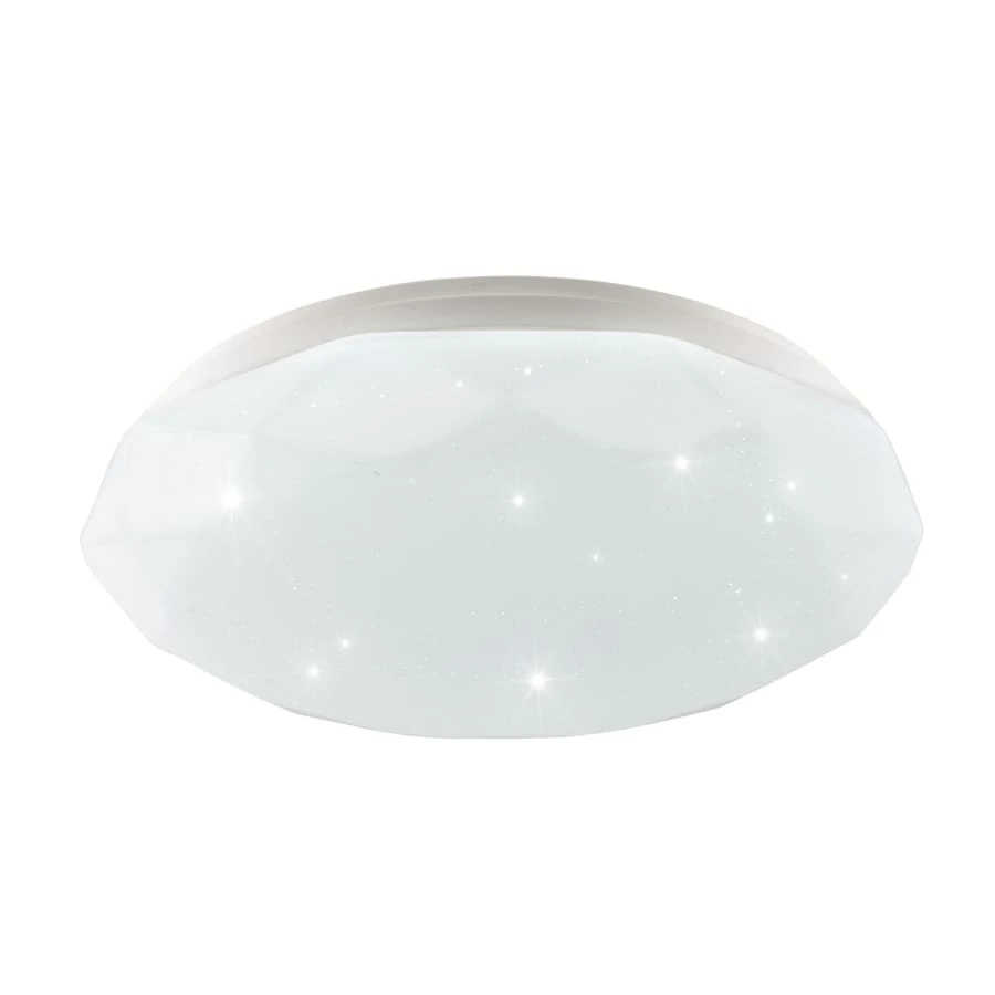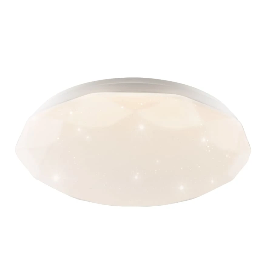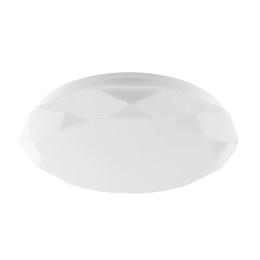 Stylish, diamond-shaped dimmable led ceiling, Ø 400mm. The color temperature can be infinitely adjusted from cozy warm (2700K) to bright daylight (6500K) with an easy-to-use remote control that also functions as a dimmer. Easy installation in the ceiling socket without tools. Suitable as a general lamp for dry interiors of the home. The opal white acrylic dome illuminates evenly.