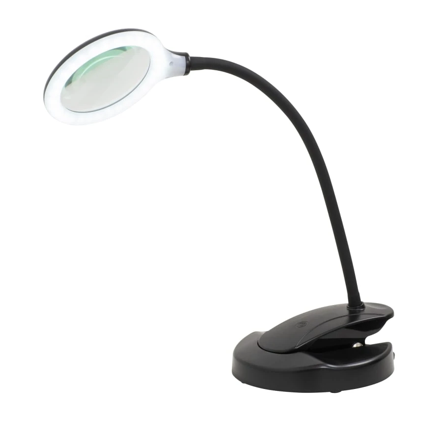 USB rechargeable, magnifying led table lamp. An excellent aid for work that requires precision: adjust and aim the light versatilely as needed. The USB rechargeable lamp is not limited by the length of the cord: charge and use wherever you need light!